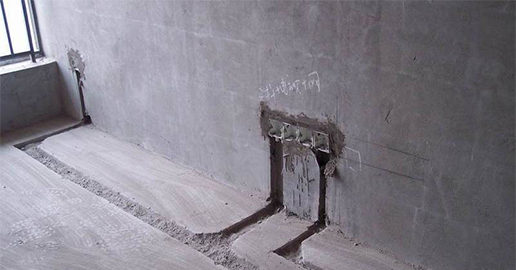 一、畫(huà)線開(kāi)槽 4、為便于封槽時(shí)水泥咬合,線槽兩邊做打毛處理毛; 5、為使墻面與槽內(nèi)防水形成整體,給排水管槽防水處理刷上防水涂料,刷至外沿 不少于50mm; 6、預(yù)埋電底盒底盒外沿與墻面沖筋條水平,固定底盒時(shí)用水平尺校正,確保底盒水平端正。