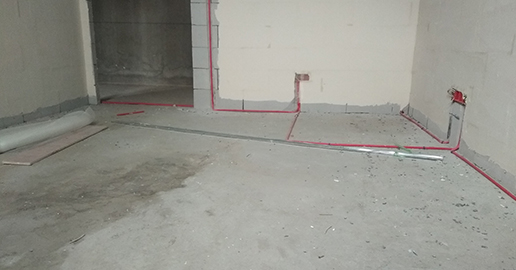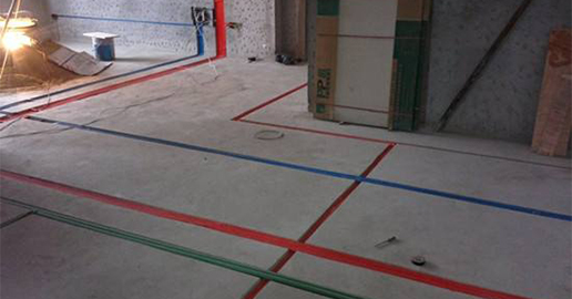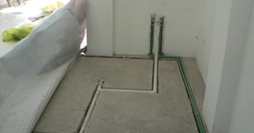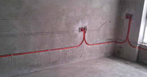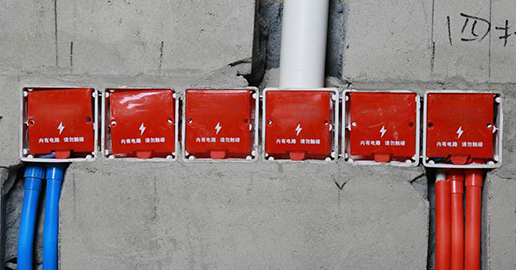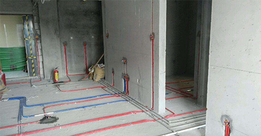 A、PVC管線分紅、藍(lán)二種顏色,紅色為強(qiáng)電管,藍(lán)色為弱電管,除過(guò)梁使用直徑8mm線管外。統(tǒng)一使用直徑20mm線管(即俗稱(chēng)4分管); B、為確保地面減少抬高,地面有找平層的彈線開(kāi)槽,不隨意抬高整體地面標(biāo)高,如果有線管需交叉時(shí),可在交叉處開(kāi)小槽,將底下的線管往槽內(nèi)壓,確保上面的線管與地面水平; C、布管做到橫平豎直、美觀、實(shí)用:陽(yáng)臺(tái)、衛(wèi)生間較潮濕地面禁止走強(qiáng)電管。 D、強(qiáng)、弱線管交叉應(yīng)用錫鉑紙隔離,錫鉑紙超出交叉點(diǎn)200mm為宜。