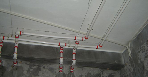A、地面水管用管碼固定,間距不大于600mm,轉(zhuǎn)角與分支處固定點(diǎn)至端頭距離不大于500mm。目的:固定牢固。 B、天棚走管固定:安裝膠粒固定吊卡底座,吊卡間距不大于800mm,將卡套螺桿沿底座絲孔擰入,打開(kāi)卡套放入水管,用螺絲刀擰緊卡套兩套螺母。